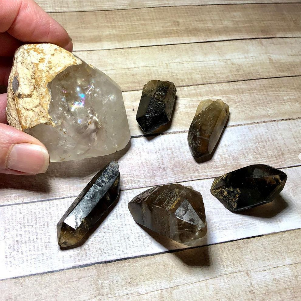 I own so many of these crystals that are coated with other minerals and the only way to clean them up is to go to the lapidary lab @longbeachmineralandgemsociety and hand polish them. I never fancied myself a lapidary type and have no designs on making cabochons – but love to “intuitively” polish these crystals to reveal their inner beauty while leaving their etchings, record keepers etc intact. It’s like finding treasure and I believe that they love to have their inner glory revealed too!