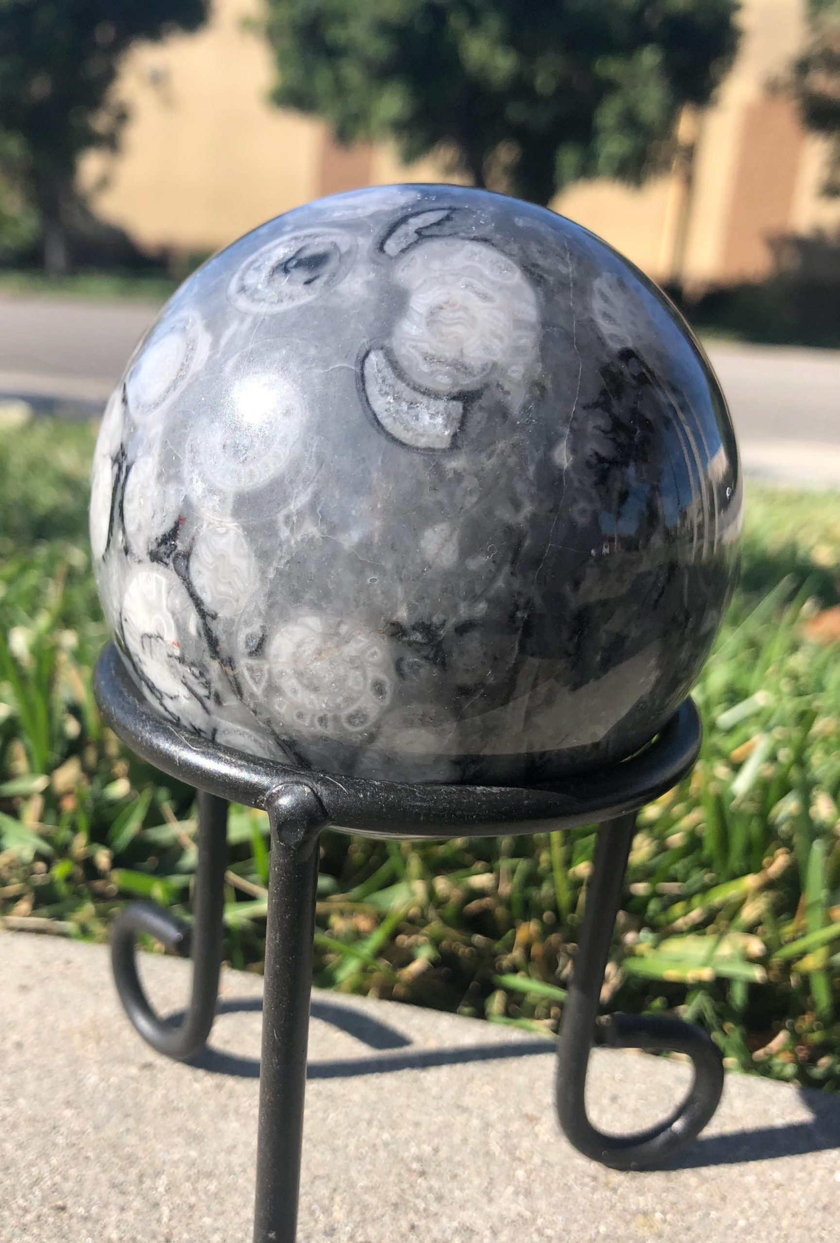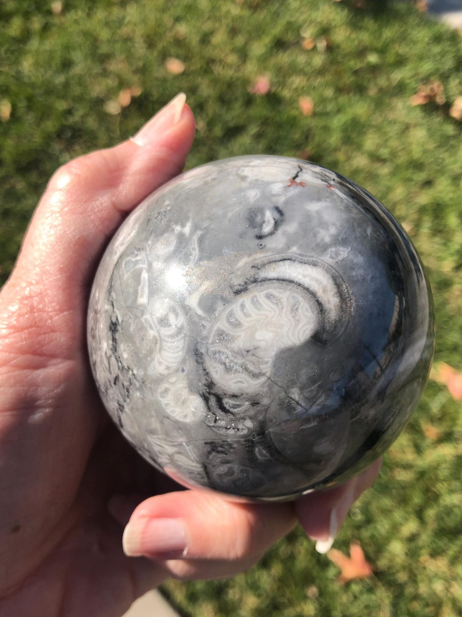 Orthoceras and Ammonite Fossil Stone Sphere! High Quality!